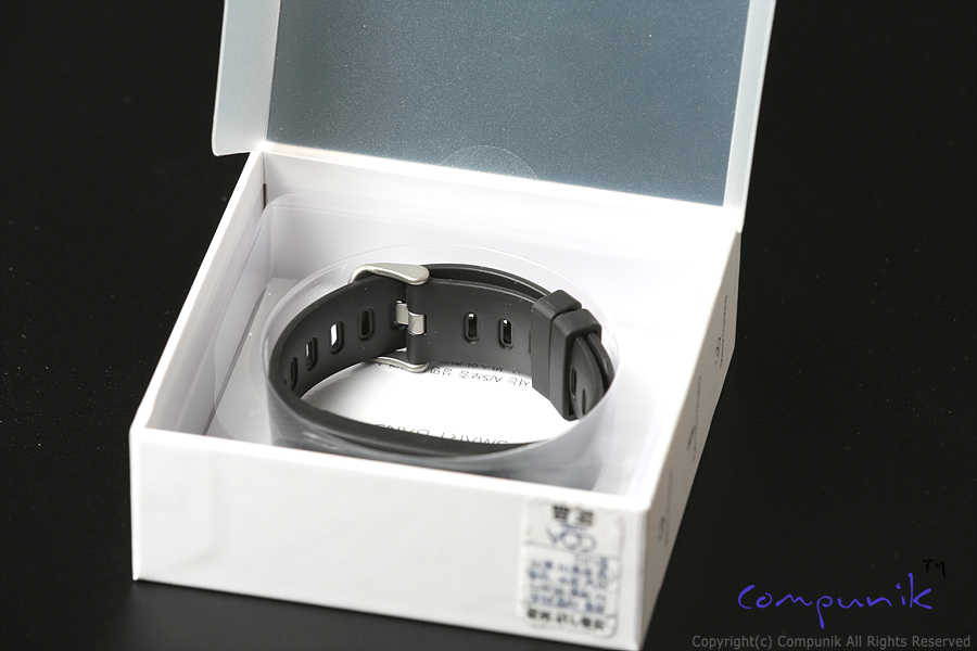 바로 이렇게 블랙색상 밴드가 기본으로 들어있습니다. 밴드는 부드러운 TPU 재질이고 시계줄과 같은 형식으로 되어있습니다.