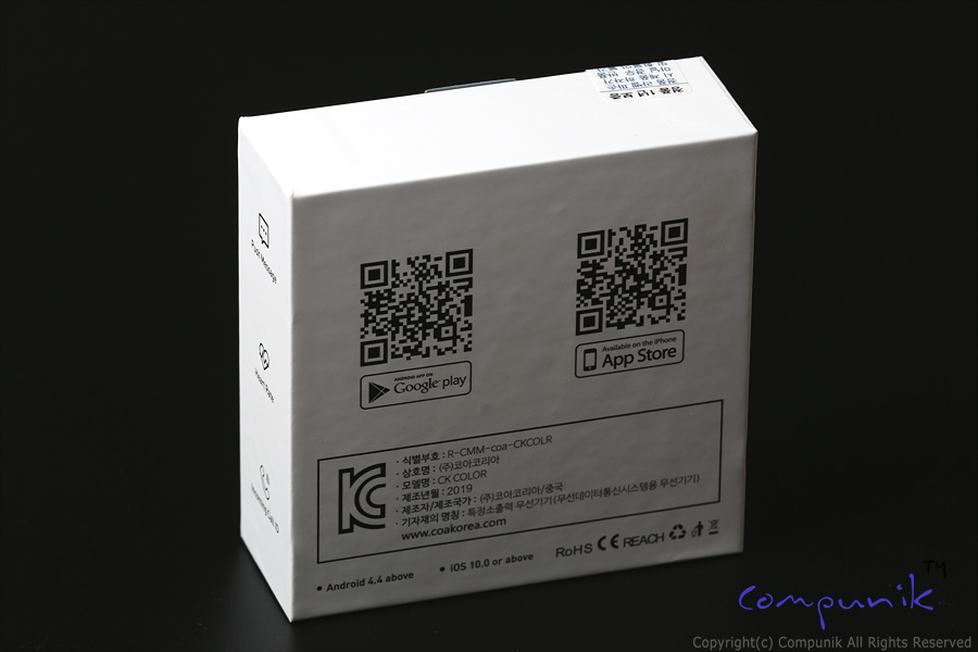 코아스마트밴드 CK COLOR 은 네모난 박스에 패키징 되어있습니다. 코아코리아 정품스티커가 붙어있고 정품 1년 보증내용이 써있네요.