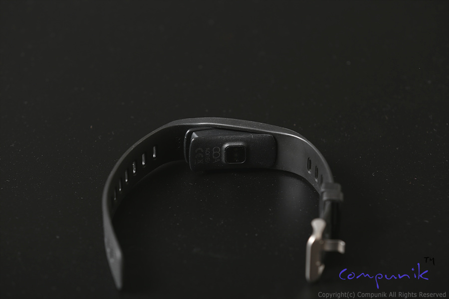 본체 아랫면에는 심박수측정센서가 위치하고 있고 USB포트연결잭이 같이 있습니다.