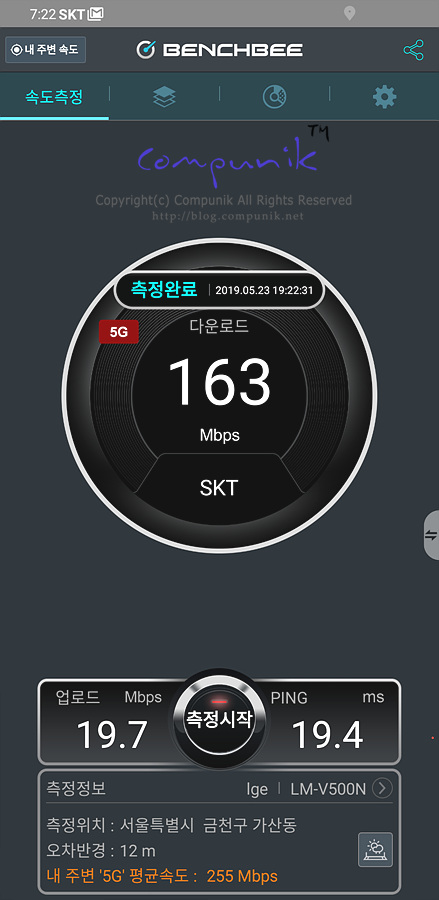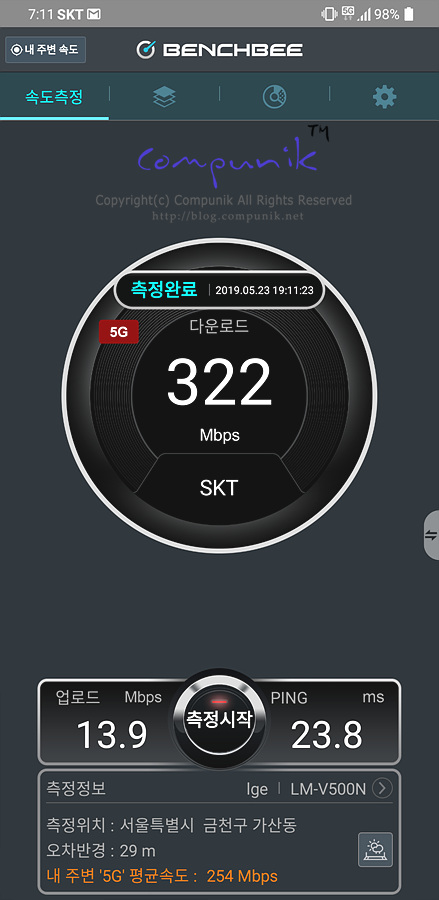 LG V50 5G로 속도비교를 해보았습니다.