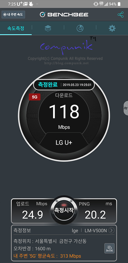 LG V50 5G로 속도비교를 해보았습니다.
