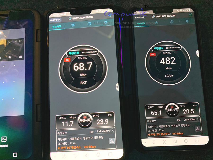 SKT와 LGU+ 의 5G 속도비교 테스트입니다.