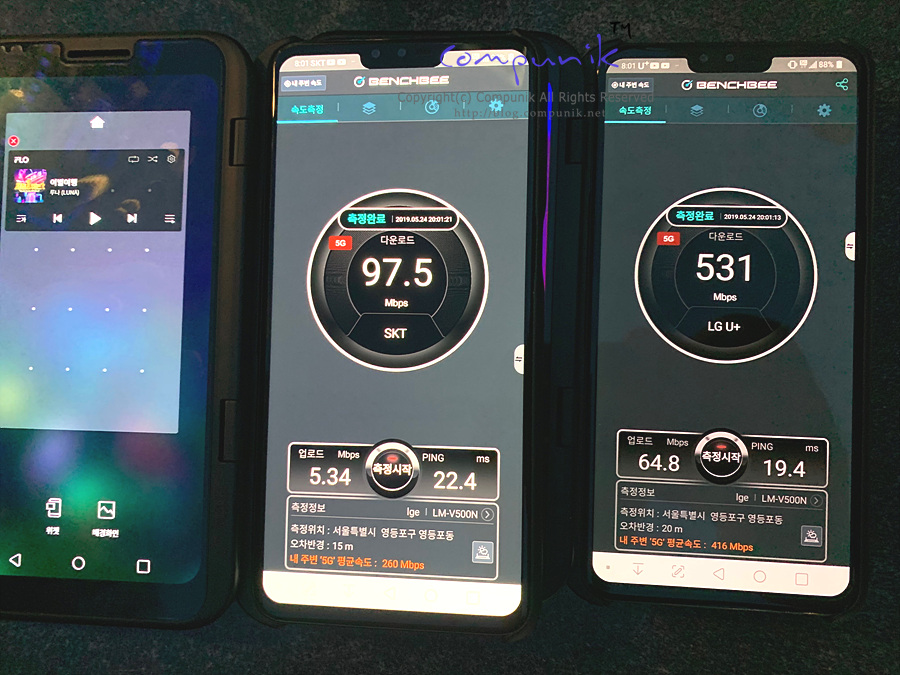 SKT와 LGU+ 의 5G 속도비교 테스트입니다.