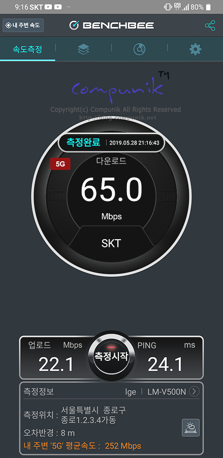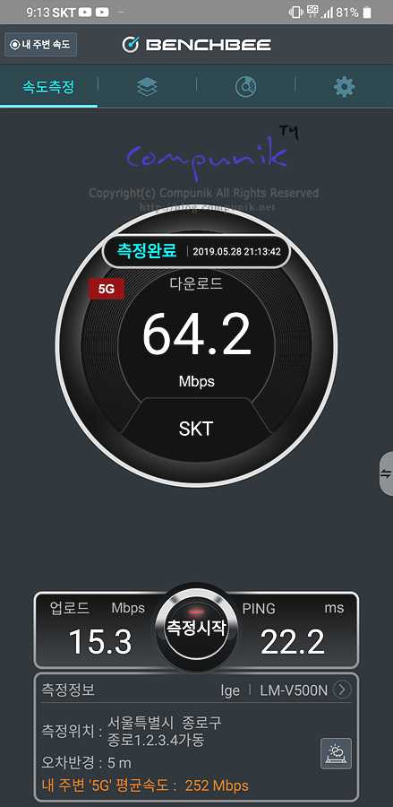 처참하였습니다. 68.7, 65.0, 64.2 로 60대에 머물러서 LTE속도수준밖에 나오지 않네요.