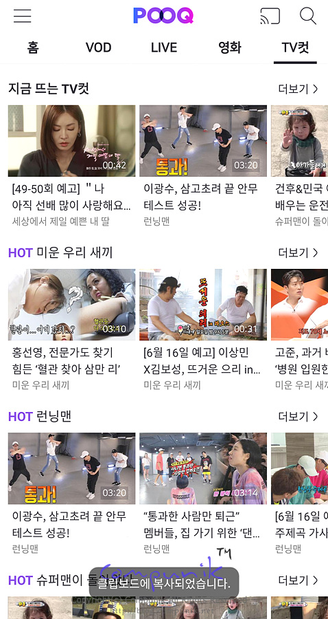 방송3사 KBS, MBC, SBS 연합 POOQ서비스가 SKT 옥수수와 통합됨으로서 이제 SKT 에서 옥수수가 아닌 POOQ을 제공해 주게되었습니다.