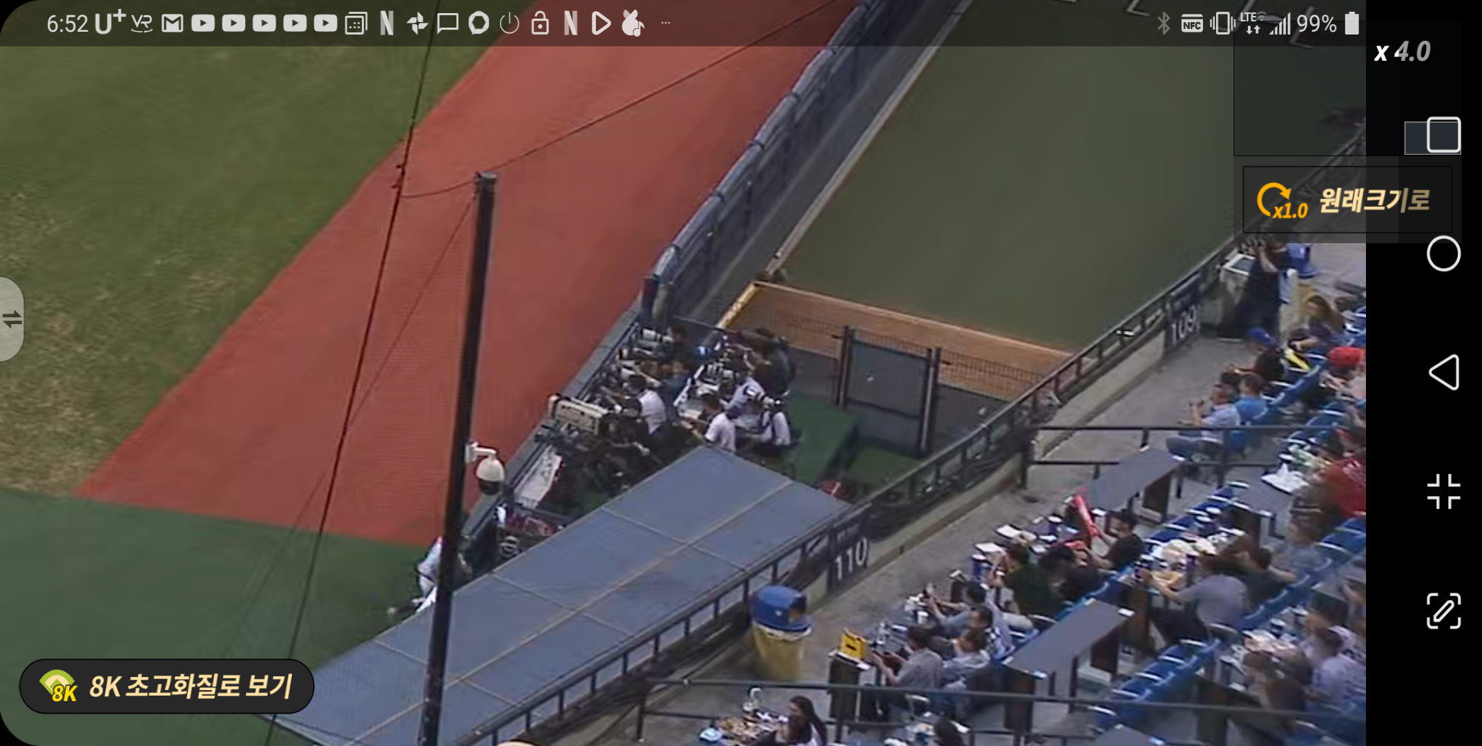 4k보다 4배 더 선명한 8k 로 불펜투수 얼굴을 더 선명하게!