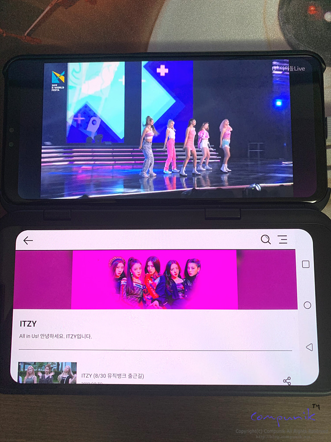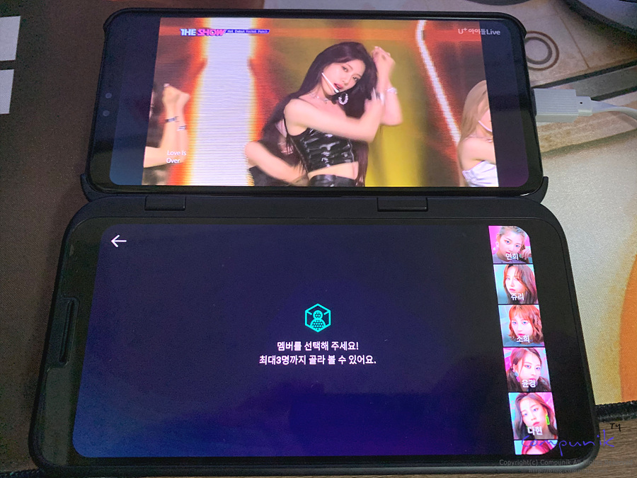 LG V50의 듀얼스크린과 만나면 바로 이런 아이돌 머신이 탄생합니다. 듀얼 스크린 모드 정말 lg v50 듀얼스크린은 덕질하기에 최상의 아이템이 아닐까 생각합니다.