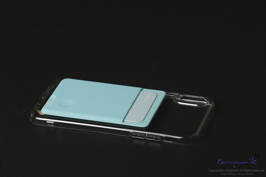 엘라고 아이폰xs용 케이스에 부착하면 바로 이런모습입니다. 아이폰xs에도 사이즈가 잘 맞아서 후면에 부착하기에 정말 좋은사이즈 입니다.