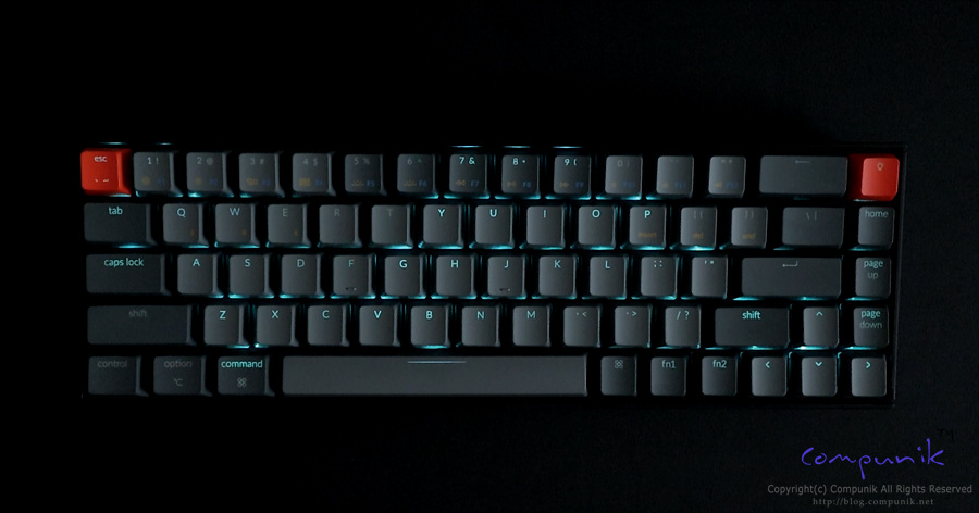 키크론 k6은 68키 하이퍼 컴팩트 키보드 입니다. 풀배열 키보드에 비해서 훨씬 작은 사이즈를 확인하실 수 있습니다.