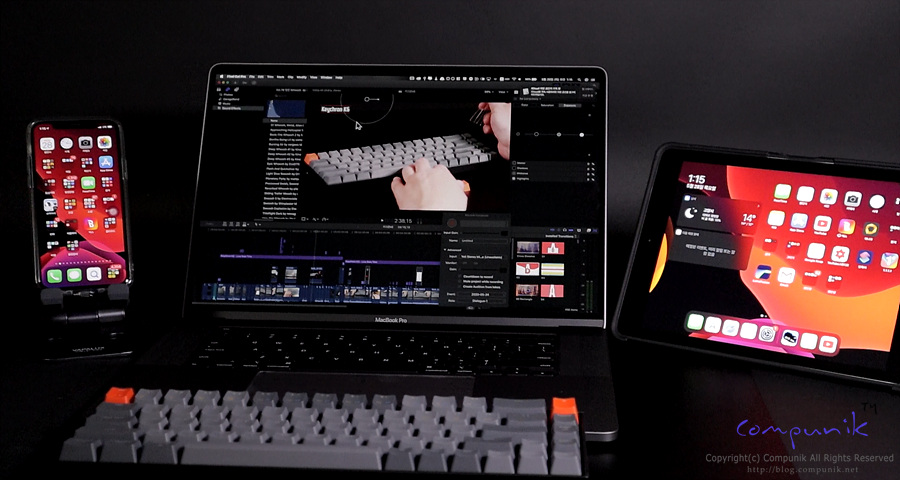 아이폰, 맥북, 아이패드 이렇게 3대를 모두 페어링 시켜놓고 전환해가면서 사용이 가능합니다.