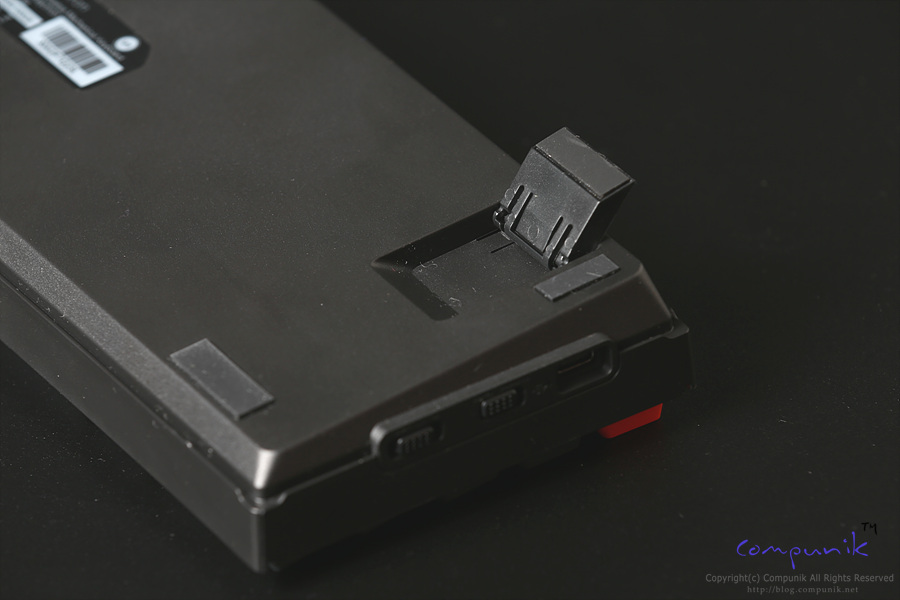 바닥에는 2단 킥스탠드가 있어서 총 3가지 각도로 조절하여 사용이 가능합니다. 최대 9도 정도의 경사로 사용이 가능합니다.