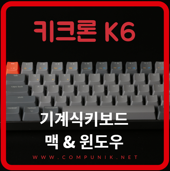키크론 k6은 68키 하이퍼 컴팩트 키보드 입니다. 풀배열 키보드에 비해서 훨씬 작은 사이즈를 확인하실 수 있습니다.