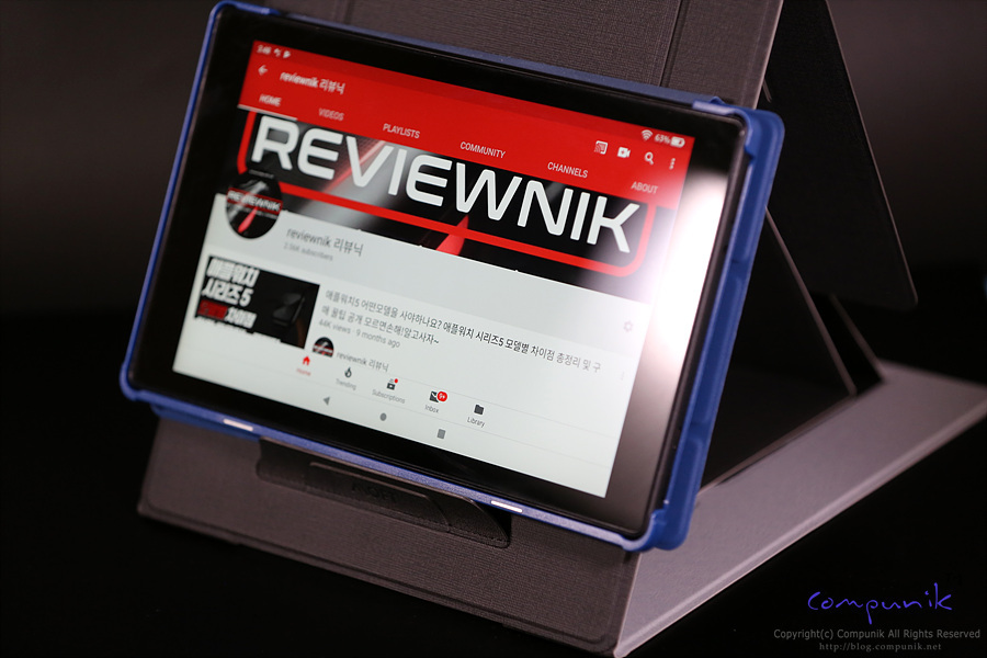 케이스를 씌운 아마존 Fire HD 10 태블릿보다 조금 얇은 정도의 두께라고 보시면 됩니다.