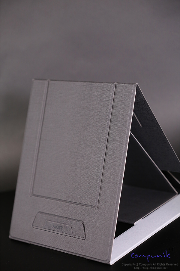 게봉을 해보면 마치 공책한권과 같은 그런 느낌이 팍 납니다. 노트북을 받쳐주는 부분에는 MOFT라고 새겨져 있습니다.