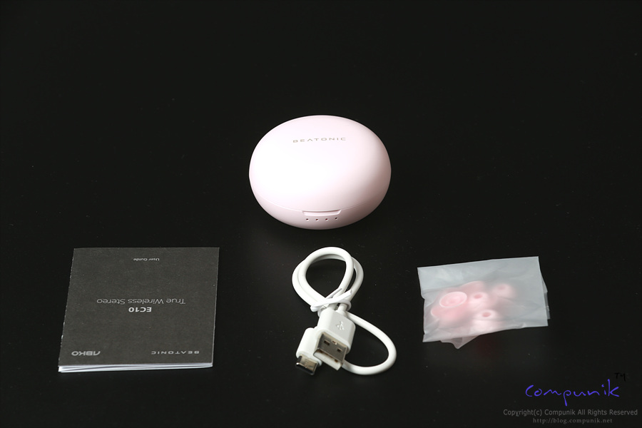추가 구성품 박스에는 usb-c타입 충전케이블과 추가 이어팁 4쌍이 들어 있습니다.