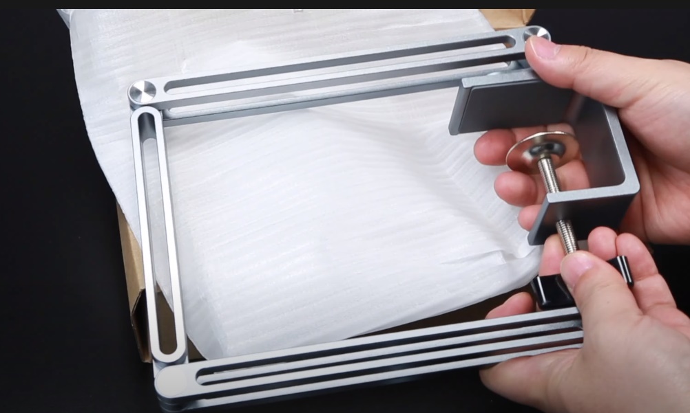 조립과 세기 조절이 모두 끝났다면 이제 책상에 장착해 주시면 되는데요 클램프형이라서 책상 옆쪽에서 끼워준후 아래에서 나사를 돌려서 튼튼하게 고정시켜주시면 됩니다.