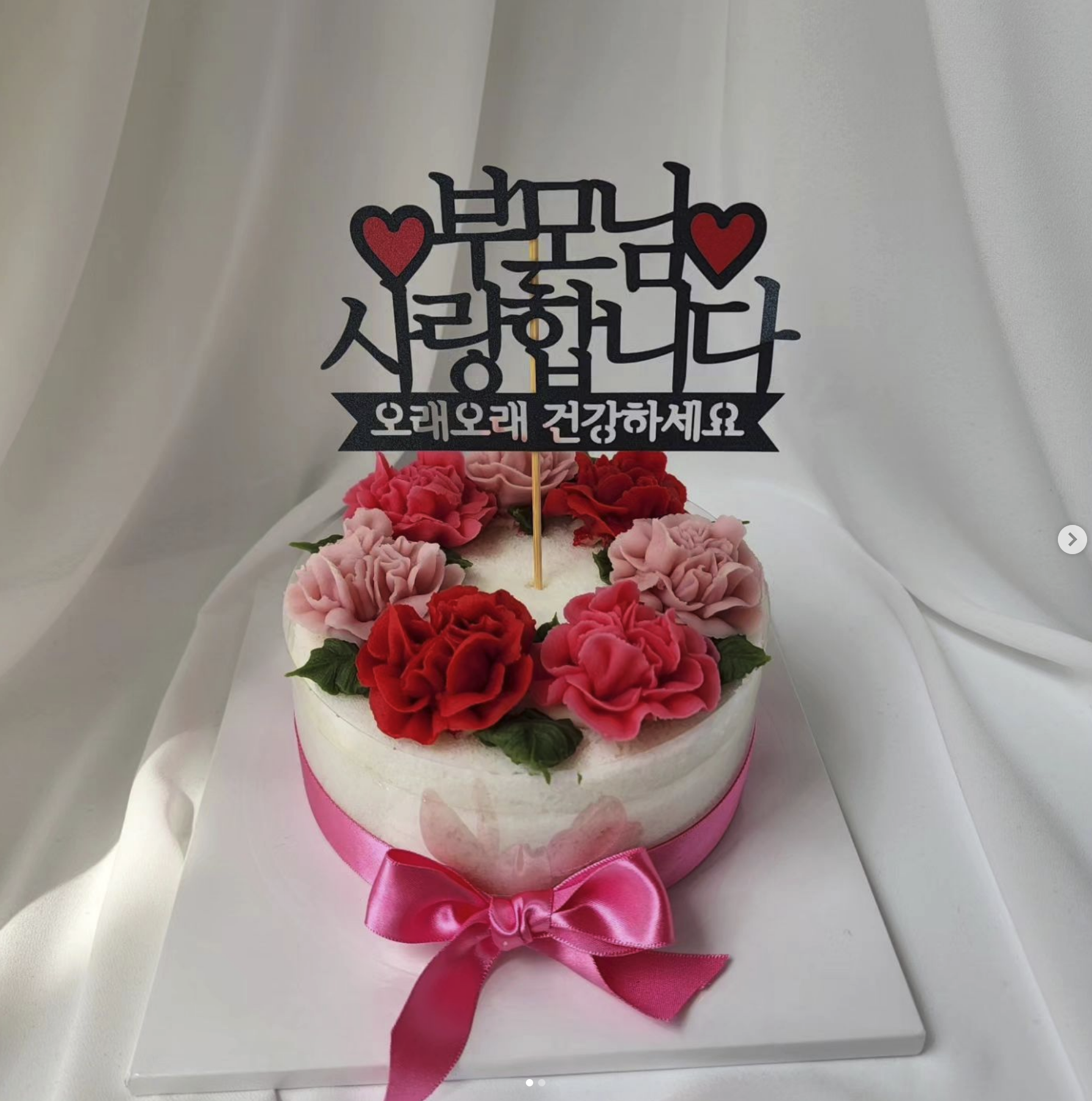 떡케이크로도 주문가능하고 크기, 색깔, 모양도 선택가능합니다. 어버이날 부모님께도 선물하기 좋습니다.