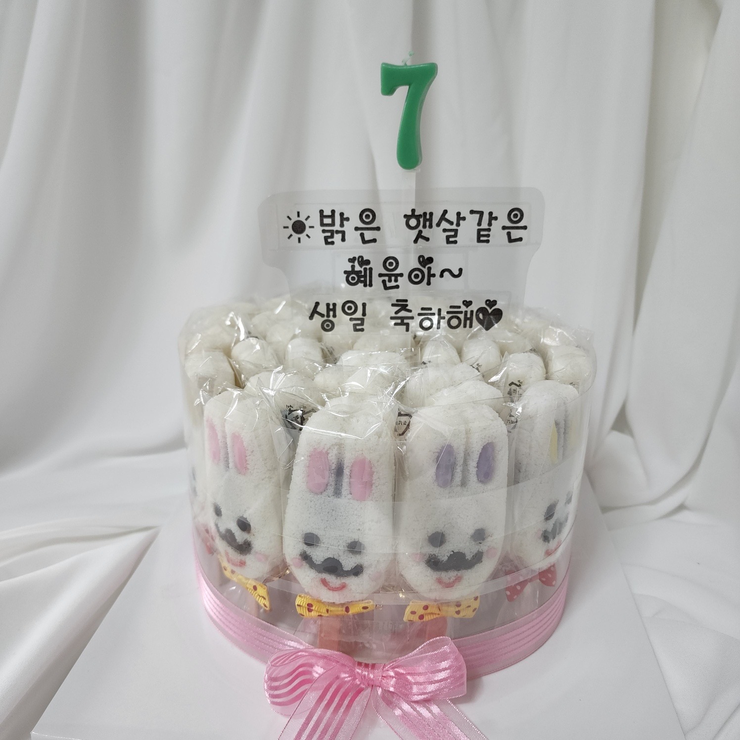 토끼설기로 만든 토끼설기 케이크는 아이들 생일잔치용으로도 좋습니다.