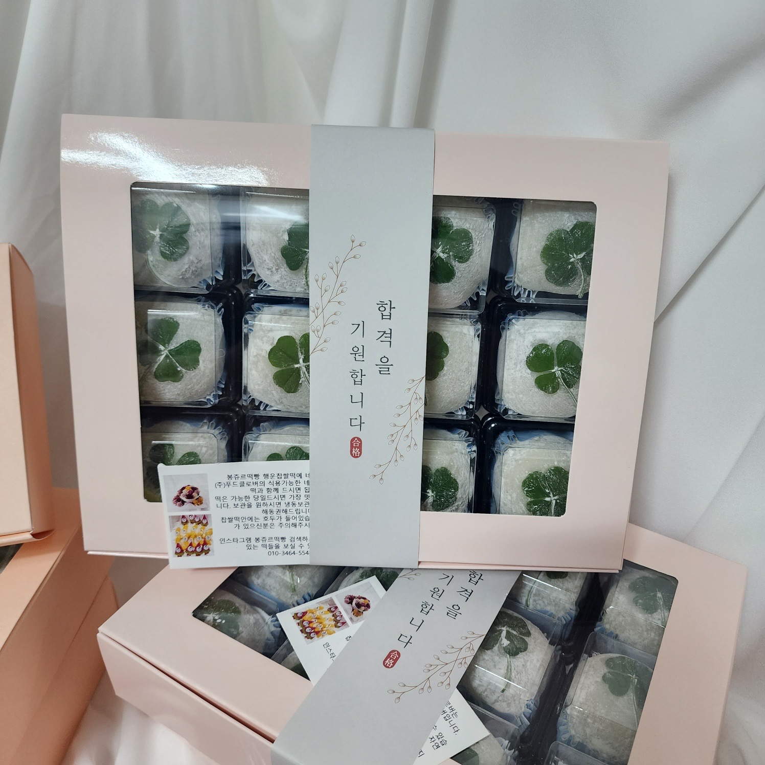 수능시험을 보는 수험생에게 합격을 기원하는 합격기원 행운찹쌀떡은 네잎클로버찹쌀떡으로 행운을 함께 전할 수 있습니다.