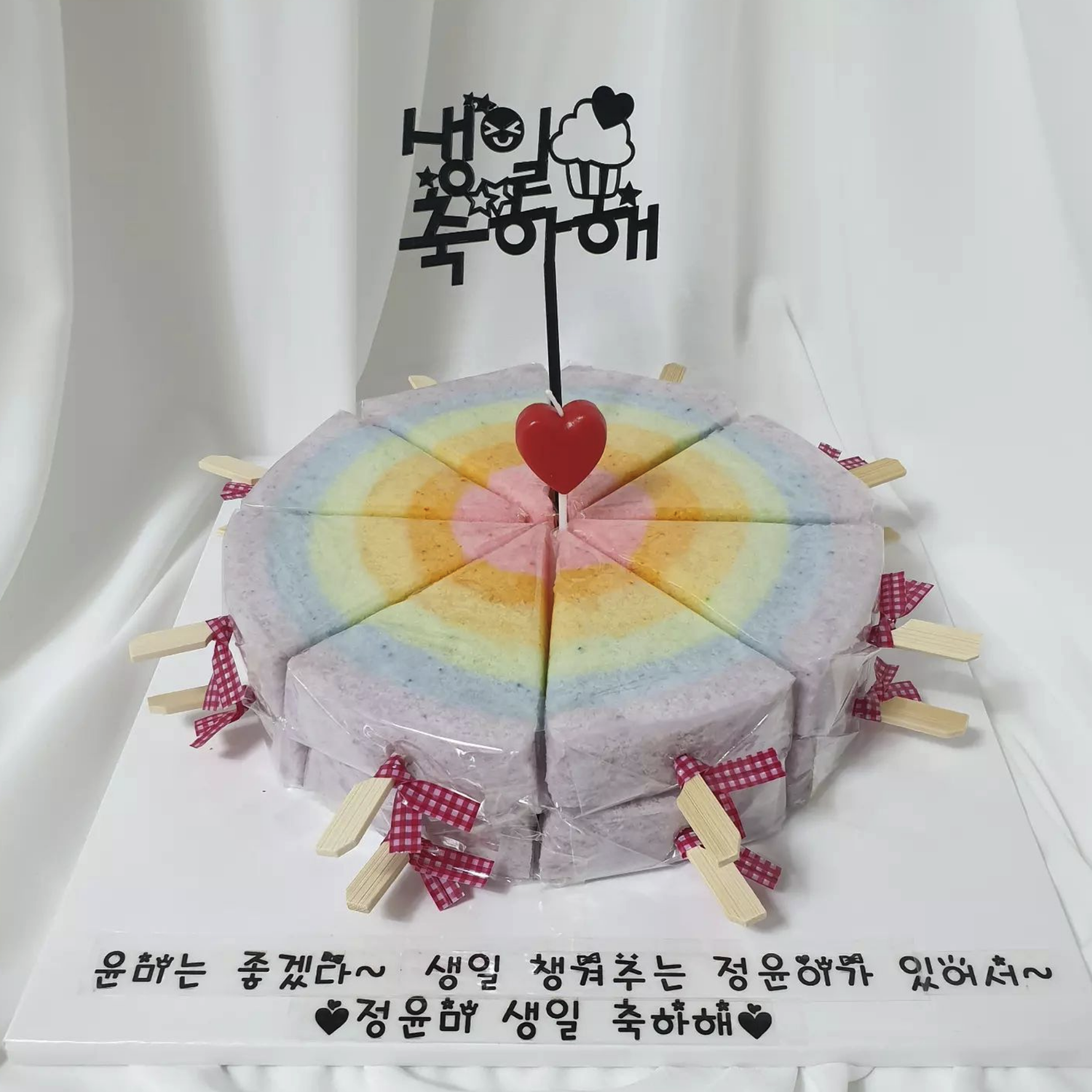 생일에는 이렇게 무지개설기케이크로도 주문이 가능합니다.