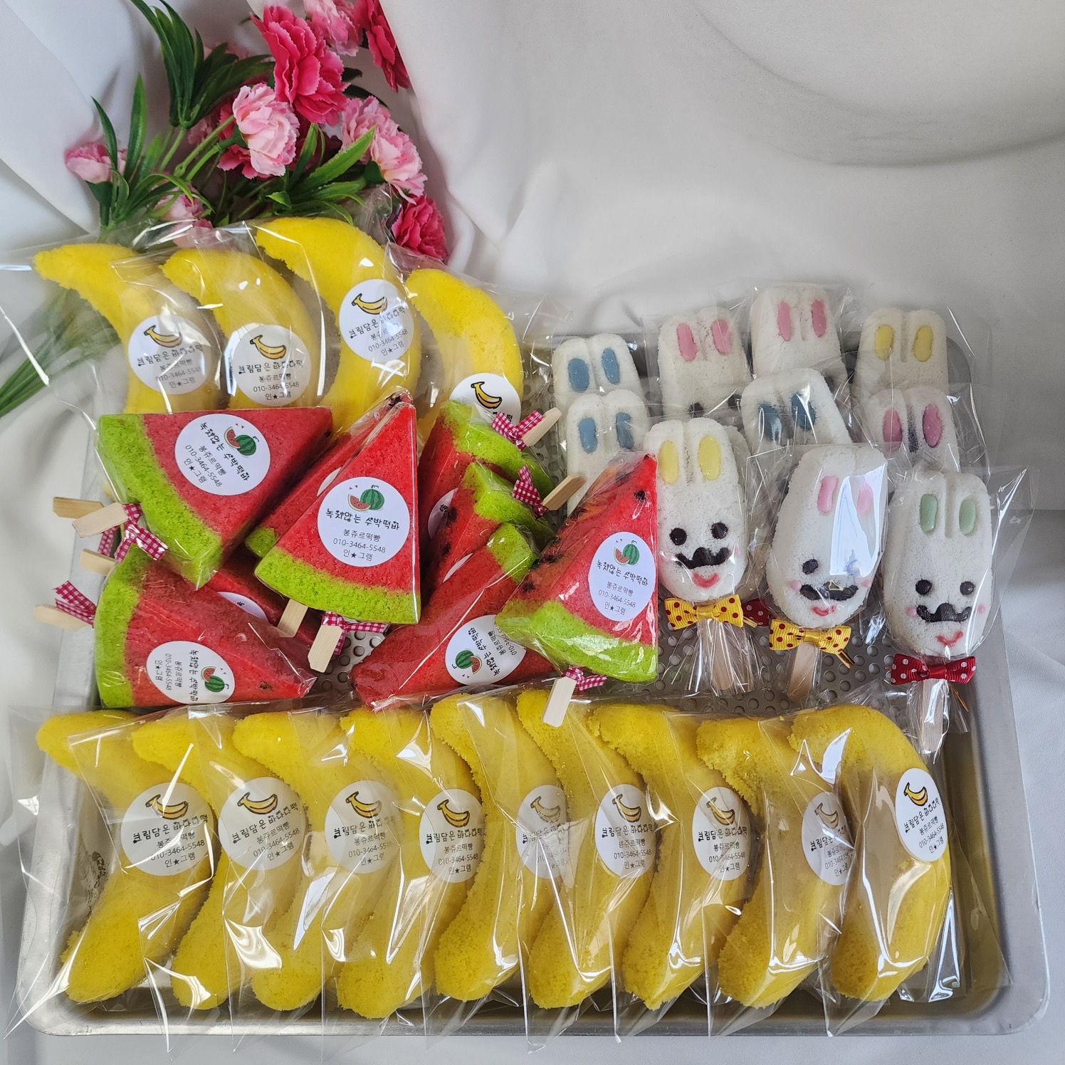 아이들에게 인기만점인 귀엽고 맛있는 수박설기, 바나나설기, 토끼설기 간식세트!