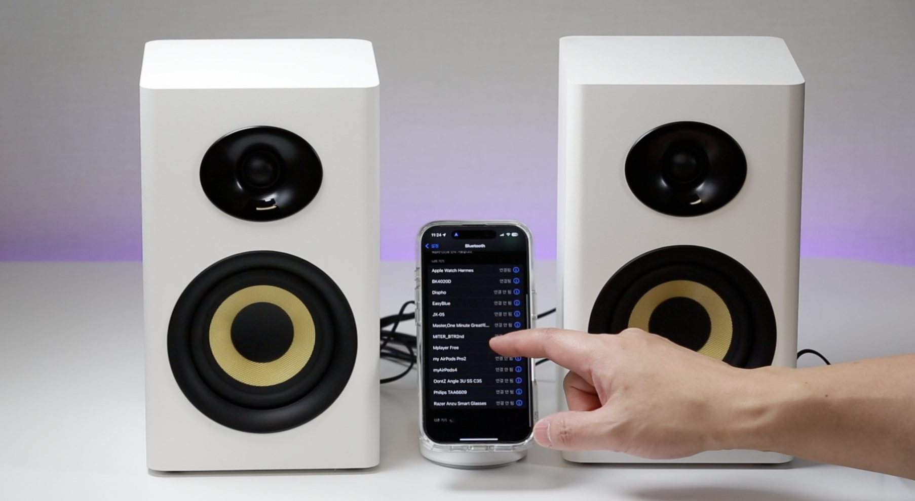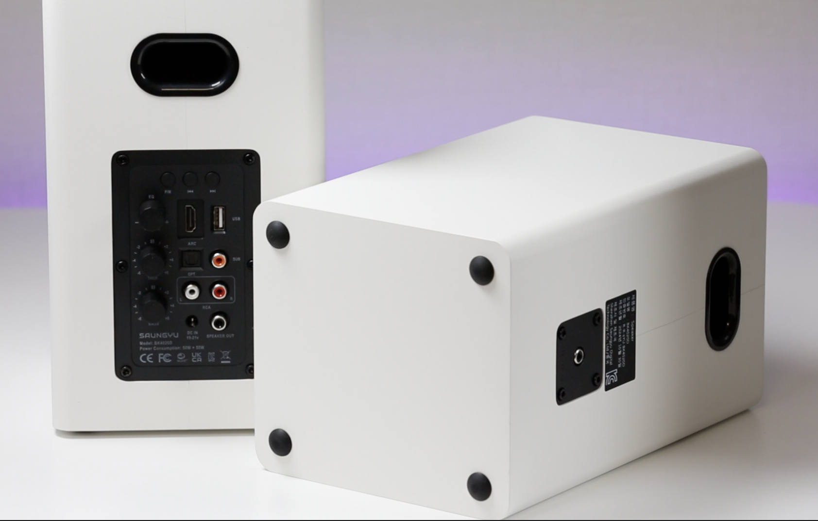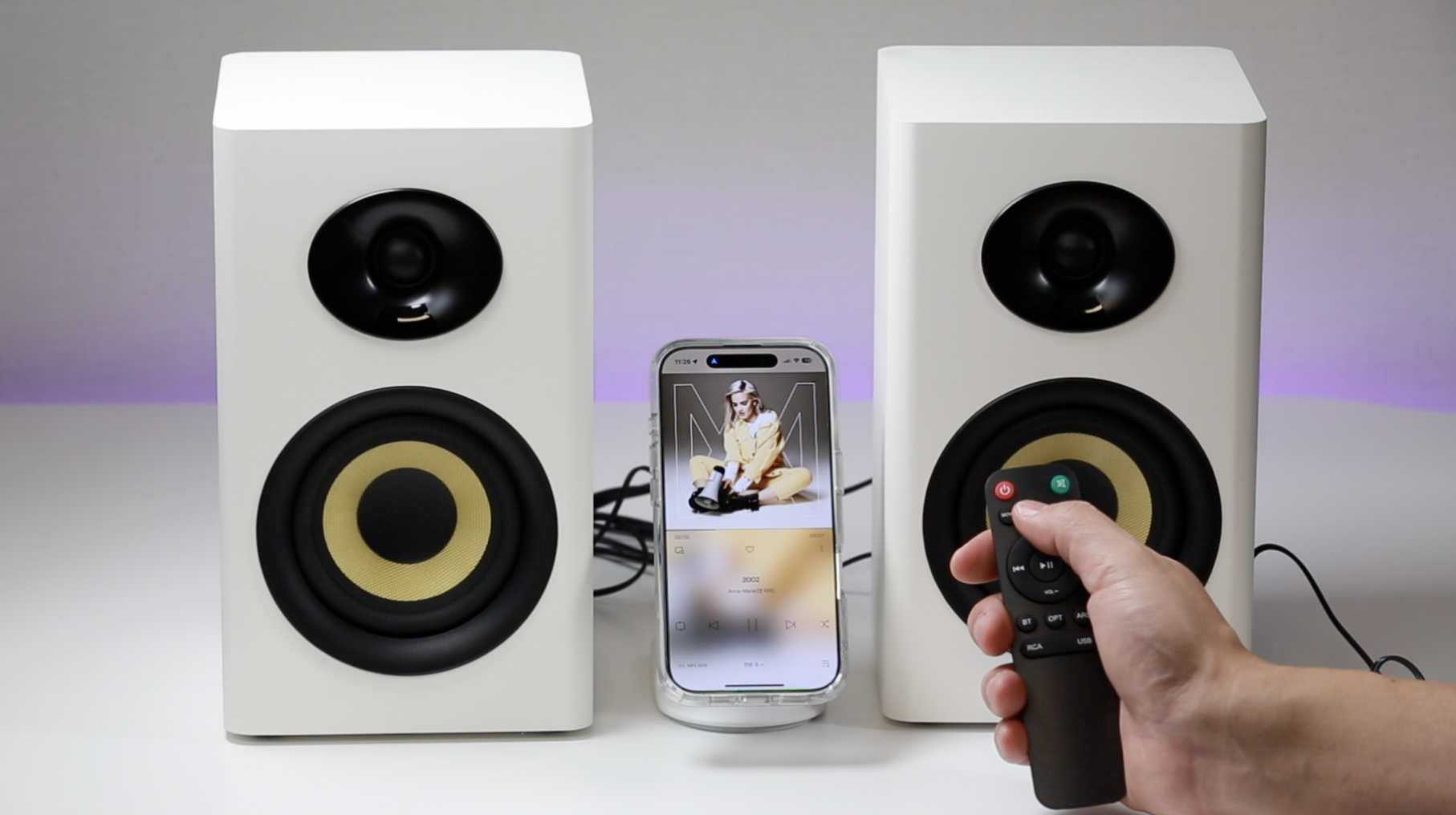 100W 파워풀한 출력의 2채널 하이파이 스피커로, 풍부한 사운드를 들려줍니다. 실제로 들어보니 깊이감 있는 베이스가 인상적입니다.