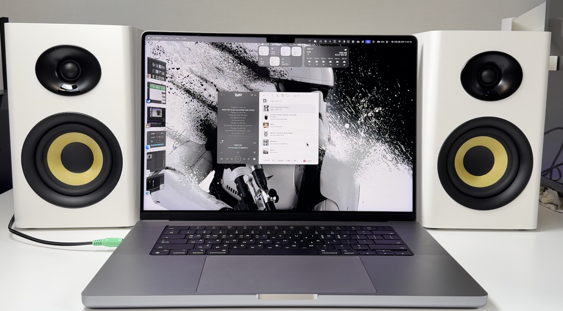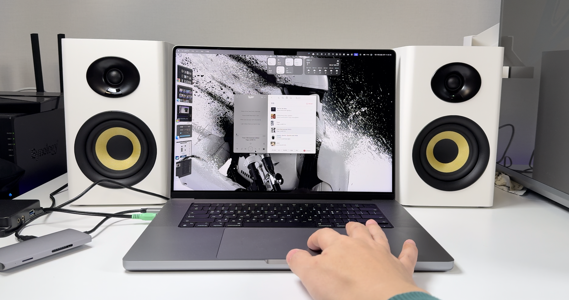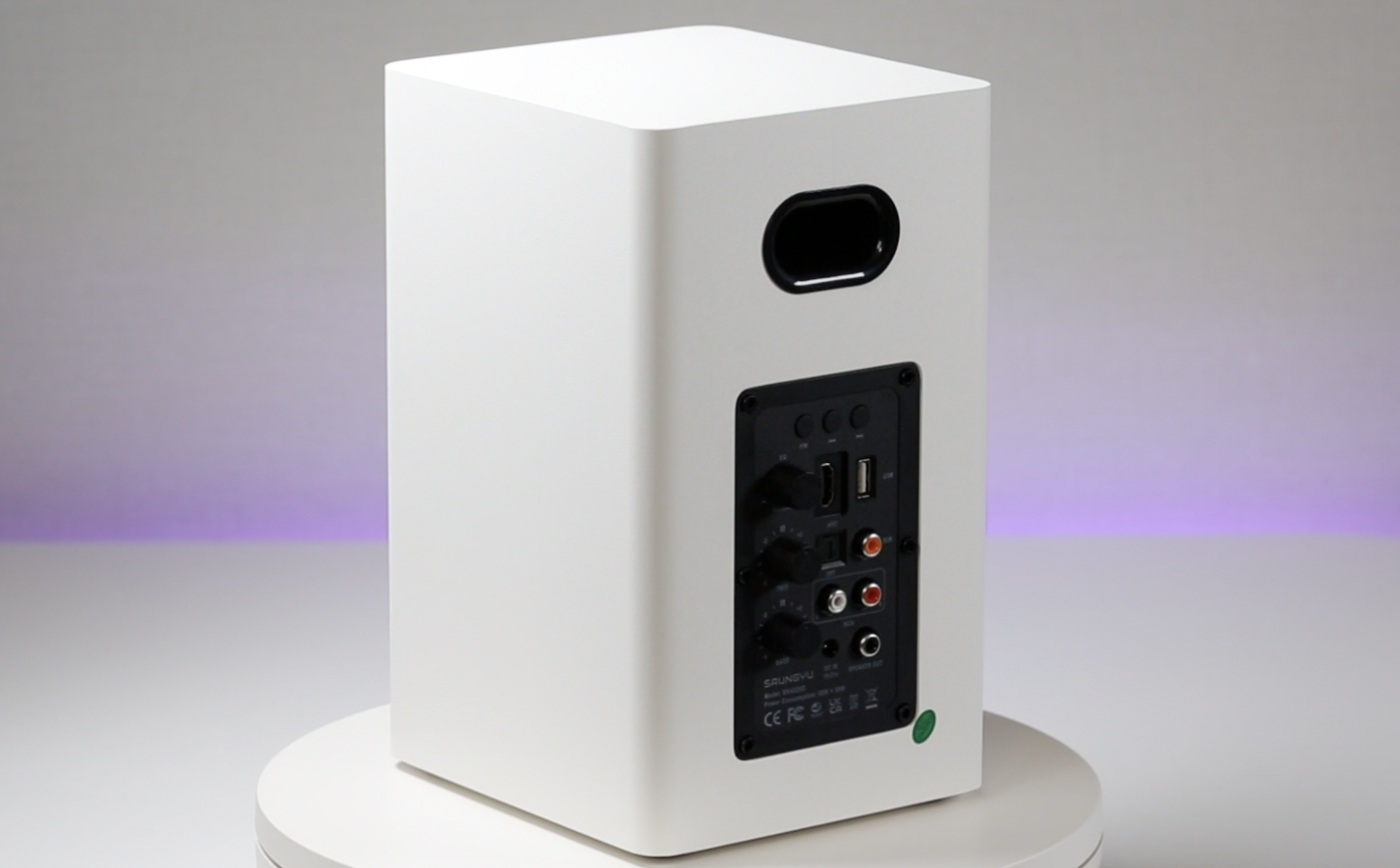 100W 파워풀한 출력의 2채널 하이파이 스피커로, 풍부한 사운드를 들려줍니다. 실제로 들어보니 깊이감 있는 베이스가 인상적입니다.