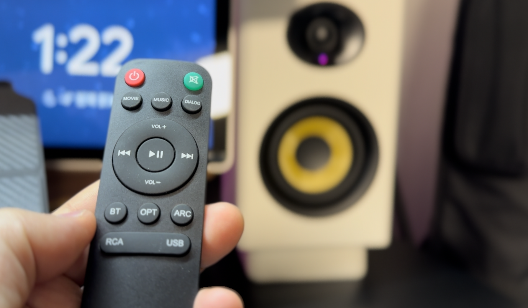 그리고 이 리모컨의 또 다른 장점은 다양한 연결 방식 간 전환이 가능하다는 건데요 블루투스, 광디지털, ARC, RCA, USB 모든 연결 모드를 각각의 버튼으로 쉽게 바꿀 수 있습니다.
