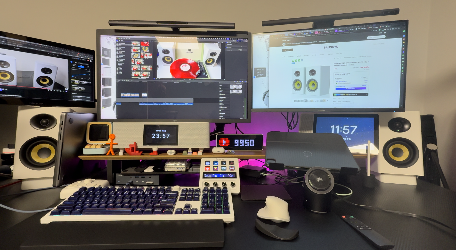 연결 모드가 바뀌면 액티브 스피커의 트위터 하단에 있는 LED 램프 색상이 변해서 현재 상태를 한눈에 알 수 있습니다. 특히 HDMI ARC로 TV와 연결했을 때는 더 편리한데요, TV 리모컨으로도 스피커의 전원, 음량 조절, 음소거 기능을 조작할 수 있습니다.